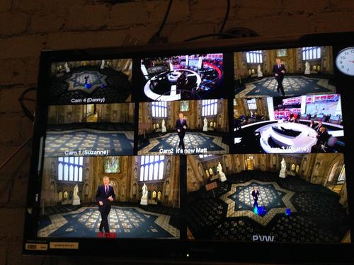 Preparation for BBC Wales coverage of General Election 2015 with tracking provided by an e-Crane with StarTracker.